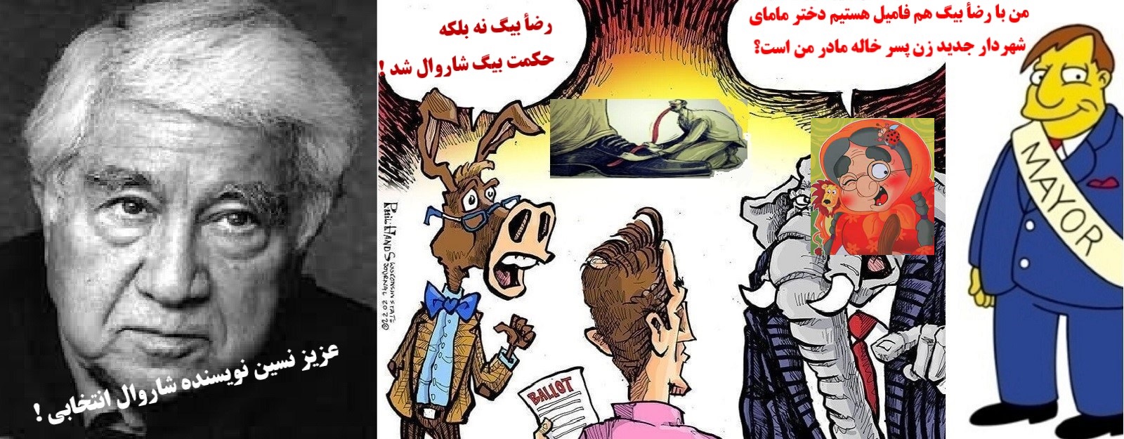 های شما نه میدانید که خداوند به من رحم کرد ، تایپیست جوانی هم که دست کمی از رفقایش نداشت در تقبیح عملکردهای رضأ بیگ باخود می گفت این رضأ بیگ را بهتر از من هیچکسی نه می شناسد با اینکه هم دوره من بود ولی یک زره هم لیاقت این کار را نداشت خیلی هم بد زبان است ….در این موقع مستخدمی که به جلسه شورای شهر رفت و آمد داشت از در اتاق در آمد به صدای بلند گفت رفقأ مژده بدهید که بالاخره رضأ بیگ برنده شد ! رئیس دفتر که از اصالت خانواده گی رضأ بیگ انتقاد میکرد برای یک لحظه صدایش قطع شد و لی سکوت او زیاد طول نه کشید و خیلی جدی و با صدای کش دار ادامه داد …اگراز روی عدالت وحقیقت قضاوت کنیم در تمام دنیا همچون شاروالی با این صفات ممتاز وجود ندارد …توگوئی باردیگر صفحه تملق آمیز و شرم آور چاپلوسی را روی صفحه گراموفون گذاشتند و سابقه تعریف و تمجید از شاروال انتخابی آغازشد …و طبق معمول در پایان جلسه نیز هرکدام از حضار مبلغی را خواهند پرداخت تا برای شاروال جدید دسته گلی تهیه شود و جشنی به افتخار این پیروزی عظیم الشان برپا گردد ..