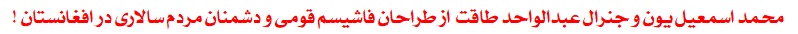 درحکومت امریکائی کابل سهم غیر پشتونها به حدی زیاد وپُررنگ است که سهم پشتونها با آنها اصلأ قابل مقائیسه نیست ….اما صدای چنین شعارهای سیاه پشتون خواهی که یکجا با بسته های رنگین استخباراتی بیگانه ها که مملو از و درمیان توده های فقیر ملت افغانستان همچون پوقانه های از نفرت می ترکید با سرعت بی نظیری از آنسوی ارگ مقروایسرای افغان تبارحکومت وحدت ملی افغانستان نیز شنیده میشد که نمونه آن سخنان کتره گونه و درعین حال کریه جناب فاروق اعظم است که در محفلی به مناسبت گرامی داشت از جهاد مردم افغانستان در محضر آقایون محمد اشرف غنی رئیس حکومت وحدت ملی و عبدالله عبدالله رئیس اجرائیه آن حکومت ابراز داشت .