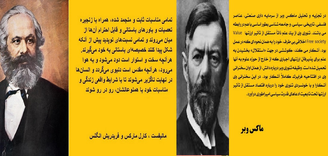 هرگاه اندیشه یک جامعه و ملت تغییر یابد تمامی مناسبات اجتماعی و اقتصادی تغییرمی یابند. تاریخ تجربی زندگی ما وهمه ملت های فقیر جهان سوم و عقب نگهداشته شده نیز بخوبی نشان میدهد که نه میتوان بصورت مطلق بر چگونگی تقدم وتأخر اندیشه و یاهم مناسبات اقتصادی حاکم بر یک جامعه حکم صادر کرد که کدام یکی تقدم دارد ؛ اندیشه یا مناسبات اقتصادی ؟زیراگاهی با تغییرفرهنگ وتفکرمناسبات سنتی حاکم بر جامعه تغییر می یابند و گاهی هم با تغییر عوامل اجتماعی و فرهنگی نوع زندگی را عوض میکند و از مرحله سنت به مرحله پیشرفت و مدرنیته میرسند ، اما نباید فراموش کرد که درتمامی این احوال و مناسبات تاریخی جوامع بشر نگاه فلسفی جامعه و ملت در حال تغییر نسبت به هستی و انسان اهمیت فروان دارد ، چنانچه همه میدانیم دید و بینیش فلسفی کارل مارکس Karl Marxدرباره هستی و انسان برفورمول بندی های ماتریالیستی یا مادیگرایانه استوار بود و نگرش کارل وبر Karl “Max” Weber در باره هستی و انسان بر خرد گرائی از جنس پروتستانت مذهبی مسیحی بود و در نهایت با نـــوشتن مقــاله معـروفش ” اخلاق پروتستانی و روح سرمایهداری “
