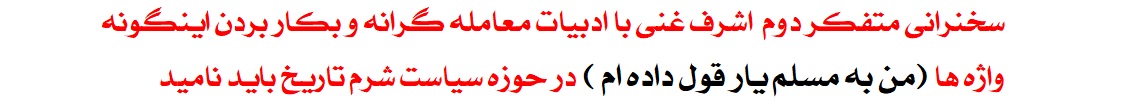 جای شگفتی است که درشرائط حساس باریکتر از موی کنونی برای کشورومردم افغانستان به عنوان کسانی که اجرای  قانون اساسی وتحقق عدالت اجتماعی واقتصادی در جامعه ازجمله خطوط سرخ زندگی ما به حساب می آوریم چنین اظهارات مسخره آمیزی از زبان  شان  جاری میگردد که نه تنها دلالت بر ناتوانائی در مدیریت جامعه از سوی آنها می کند بلکه مضاف بر آن  وقتی جناب اشرف غنی علاوه بر لقب شریف و بلند بالای دومین متفکر جهان ازمنبرسرقوماندانی اعلی نیروهای مسلح وریاست جمهوری افغانستان در محضر برخی از استادان  ارجمند ی که برای استماع بیانات داهیانه پیشوا به اتاق نمائیش آورده شده بودند
