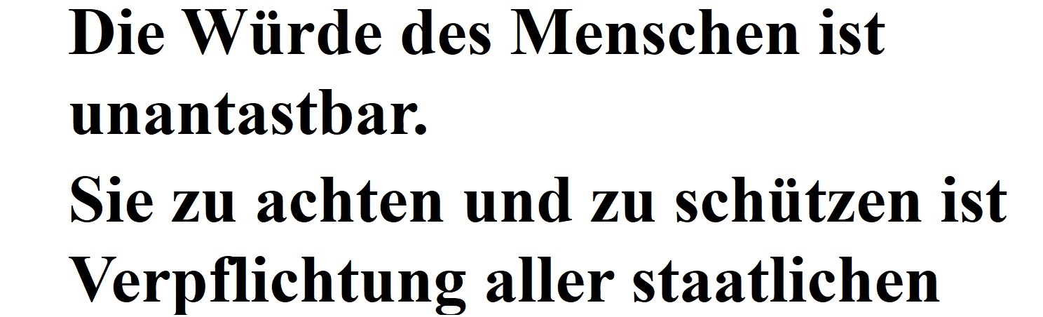 (کرامت انسان از تعرض مصون است. احترام و حمایت از آنها وظیفه همه مقامات دولتی است .) بر عکس این ادعا و خلاف این قانون کشور آلمان و دیگر کشور های غربی شامل در جنگ های اوکراین و حمایت از جنگ اسرائیل شریک جرم در پامال نمودن کرامت انسانها غزه ولبنان در مساعی دیپلوماسی، استخبارات ، لوژیستیکی وارسال کمک های نظامی و اقتصادی میباشند.انسانها نباید مسؤلیت های فردی خود را فراموش کنند و به جنایات و اشتباهات جنگی و پامال نمودن حقوق انسان توسط نظام های حاکم بین المللی، سکوت نمایند.