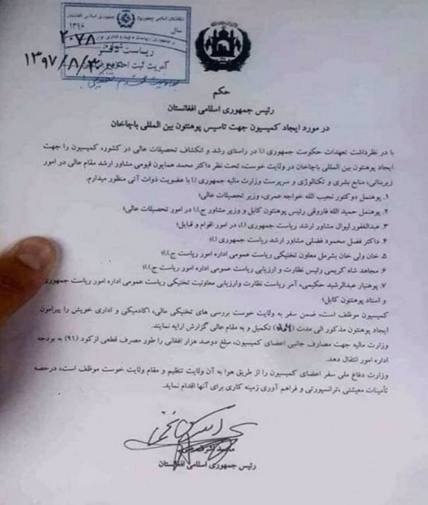 ۸– د خوست ښار د هندوانو کلی څخه د شرق په امتداد سړک دې تر خونی خوړه پورې د ۴۰ متره په عرض په پلان کې ونیول شی.- خوست له محترم والی صیب څخه مو هیله او غوښتنه ده چې د خوست ښار د پراختیا، پرمختیا، ښکلا او سمسورتیا لپاره د دغې طرحې د تخنیکی ارزونې، پلان جوړولو او منظورۍ او د اسنادو ترتیب لپاره د خوست اړونده ادارو ته لازمې لارښوونې وکړی.د ښار جوړولو محترم وزارت څخه مو هیله دا ده چې تر تخنیکی او فنی سروې وروسته یاده پیشنهادی طرحه منظوره او د خوست ښار لپاره په جوړیدونکی ماسټر پلان کې شامله کړی. د جمهوری ریاست د چارو ادارې له محترم تخنیکی معینیت او په ځانګړی توګه له ښاغلیو بشرمل صیب او کریمی صیب څخه مو هم هیله دا ده چې دا خاکه د ښارجوړولو وزارت له تخنیکی ارزونې وروسته له یاد وزارت سره په همغږۍ داسنادو له ترتیب وروسته دافغانستان دکابینې غونډې ته دمنظورۍ لپاره وړاندې کړی.
