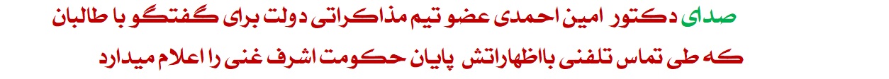 فعلأ یک توافق ابتدائی روی اجندأ حاصل شده از مذاکره ای که انشأالله در هفته ای که پیشرو داریم شروع خواهد شد روی اجنداست انشأالله !یعنی ما داریم روی مسائل اساسی که در اجندا پیشبینی شده بحث خواهیم کرد …وقتی مجری برنامه از ایشان سوال میکند که ضمن اینکه در آغاز گفتگو گفتید که بحث حکومت موقت نیست ولی شما مدتهاست که با طرف طالبان گفتگو کردید میدانید که آنها بر مواضع خود شان سرسختی میکنند و شما هم بر مواضع خود تان سرسختی میکنید ، آیا به شکل غیر رسمی در کوریدورها دردالان ها درباره یک راه حل سوم هم فکرمیکنید چیزی بین نظر شما ونظر طالبان ؟ آقای احمدی عضو ارشد تیم مذاکراتی دولت جمهوری اسلامی افغانستان گفت : طبیعی است البته فکر خوباید همیشه وجود داشته باشد ما باید به دنبال راه حل باشیم چنین چیزی طبیعی است ، اما اینکه موضوع حتی به یک گفتار مستقیم میان ما وطالبان تقسیم شده باشد تاهنوز نه وچنین چیزی وجود نداشته است .